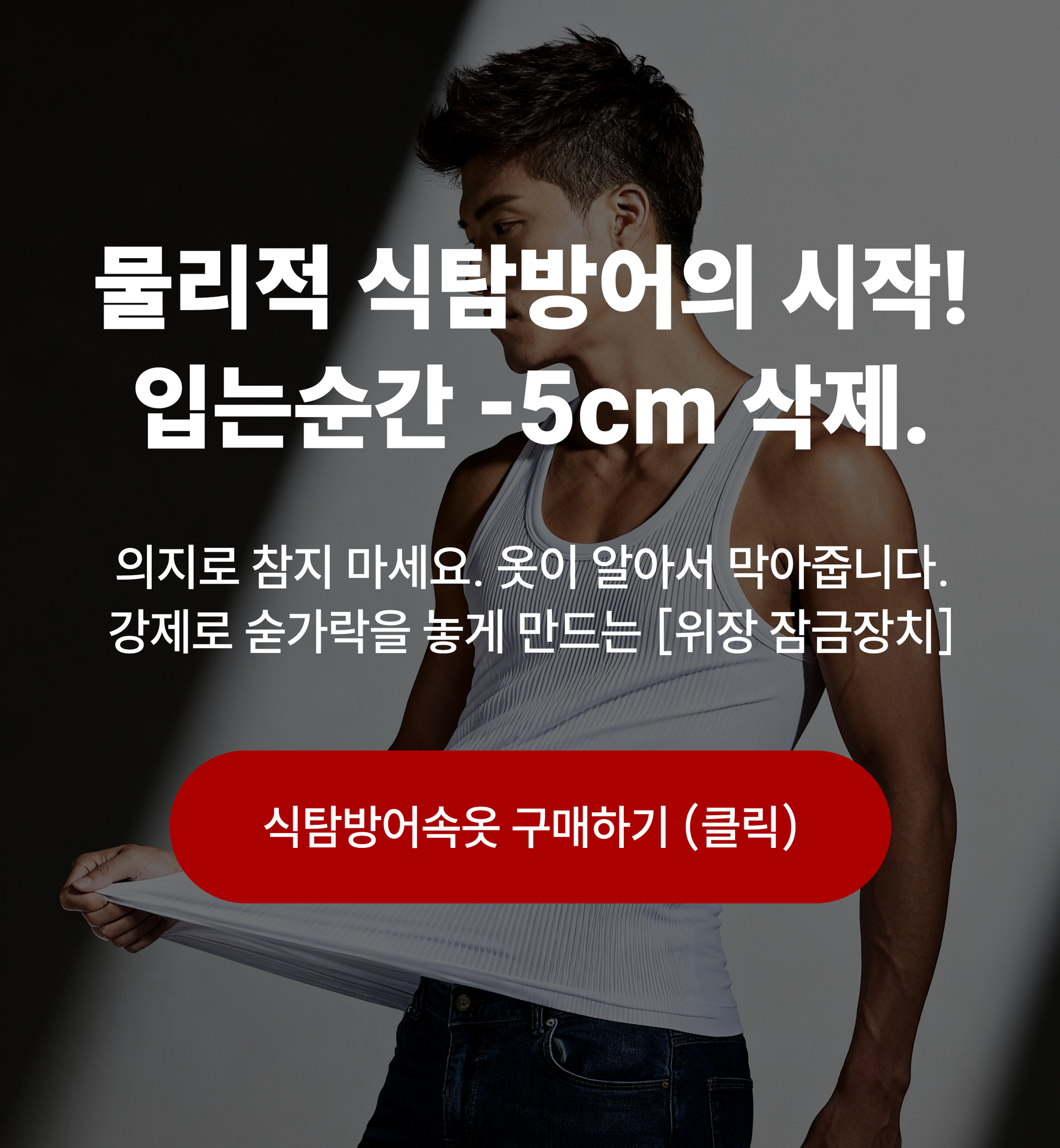 2012년부터 VJ특공대 등 방송이 검증한 대한민국 No.1 남자보정속옷. 그 독보적인 압박 기술력이, 이제 당신의 위장을 방어하는 갑옷이 됩니다.